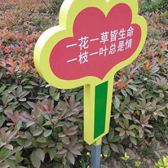 花草牌是指樹立在花草叢中用于提示愛護的標識牌。又稱牌或草牌,屬于溫馨提示的范疇。花草牌一般較矮,一般高度在40公分到1.2米之間,是雙面,厚度一般是4公左右。有鋼板的,有純實木的,或上述材質相互結,制作工藝為: